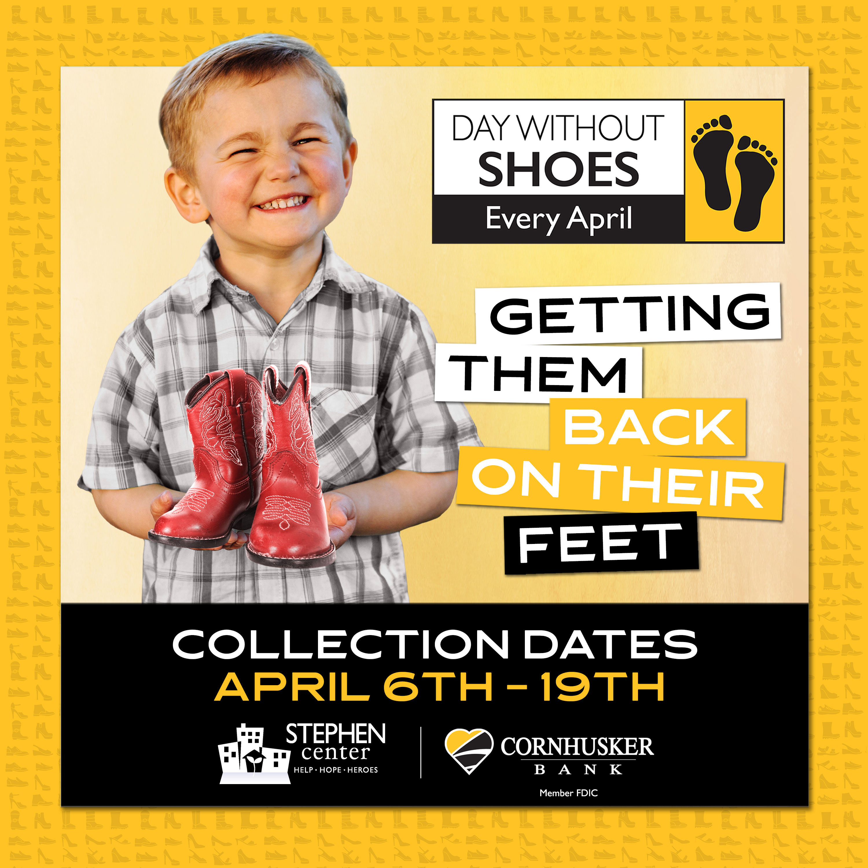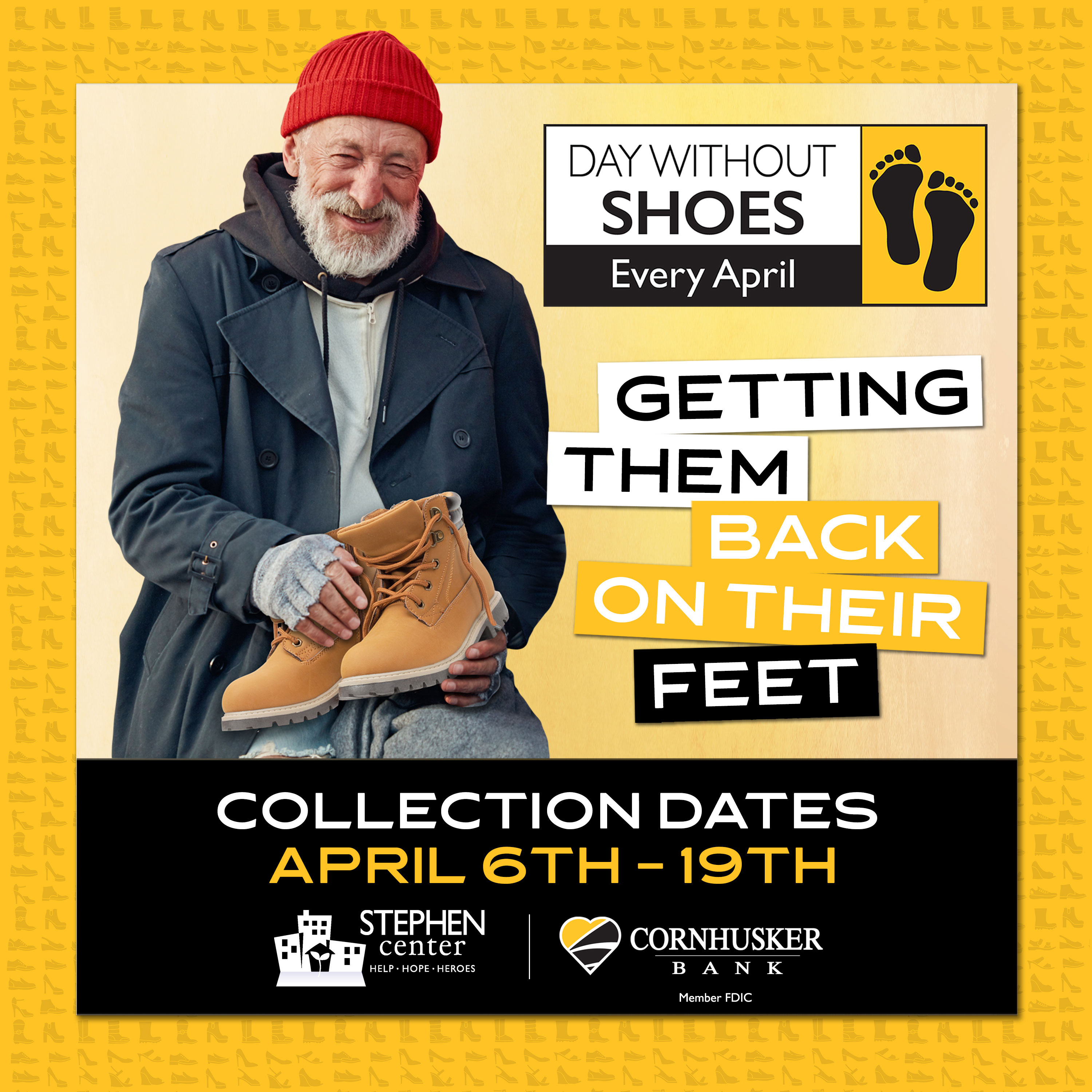 Join us every April to help get new and gently used shoes to people in need around Omaha. This long-running special collection focuses on shoe insecurity and there are so many ways you can participate. Let's work together to make this Day Without Shoes another memorable event that benefits our community.